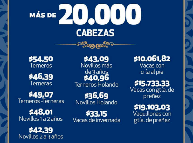 – Vaquillonas con garantía de preñez $19.103,03 y