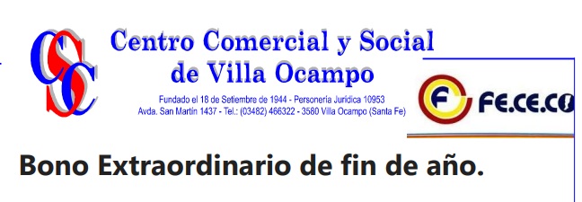 En el día de hoy, el Centro Comercial y Social de Villa Ocampo junto con la Federación de Centros Comercial de la provincia de Santa Fe, emitieron un comunicado dirigido al Estado: