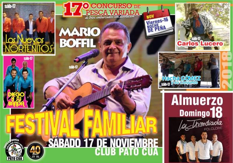 Este fin de semana, 16, 17 y 18 de noviembre, en las instalaciones del Club Pato Cuá de Las Toscas, se realiza la pesca variada para tríos embarcados con devolución. Viernes Noche de Peñas; sábado Festival familiar y el domingo con el concurso propiamente dicho.