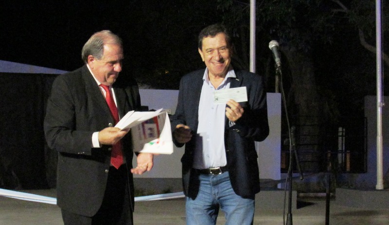 En el transcurso de la ceremonia, el ministro Morini y el senador Marcón, hicieron entrega de un aporte de 2.292.000 pesos al intendente Chamorro, para destinarlo a la 2ª etapa de pavimento urbano.
