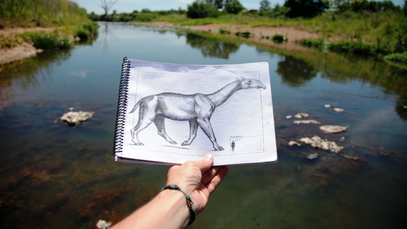 “Se trata de una macrauchenia completa, ya que está el cráneo, toda la columna, las patas y la costilla prácticamente entera. Este hallazgo es importante porque en la provincia de Santa Fe nunca se había encontrado esta especie así de completa, habían aparecido partes y pedazos pero nunca enteros”, informó Rey desde el área de Patrimonio de la provincia y agregó que “la macrauchenia es un animal del género de los Litopternas y no tiene ningún pariente actual. Es un bicho muy raro, parecido a un camello, tiene características de un tapir porque tiene una fosa nasal en la parte suprior del cráneo, con lo cual podría haber tenido una trompa y llega a unos 3 metros de alto con el cuello porque tiene las vertebras del cuello muy largas».