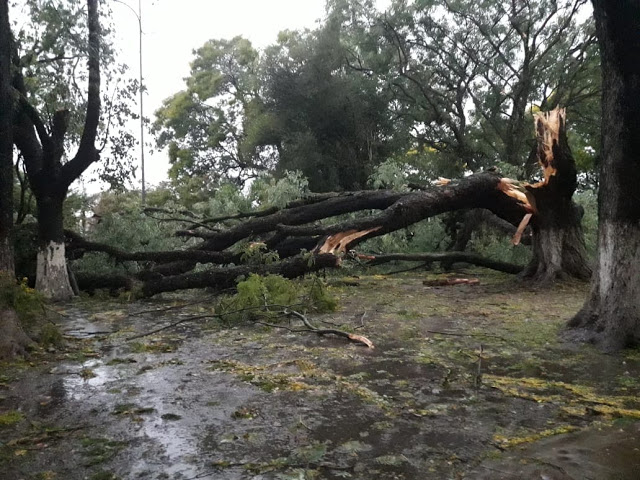 Una de las localidades más afectadas por el intenso temporal del último fin de semana, fue Villa Guillermina. Allí hubo destrozos de árboles, cables y postes caídos y voladuras de techos; entre ellos, el de la comisaría del lugar.