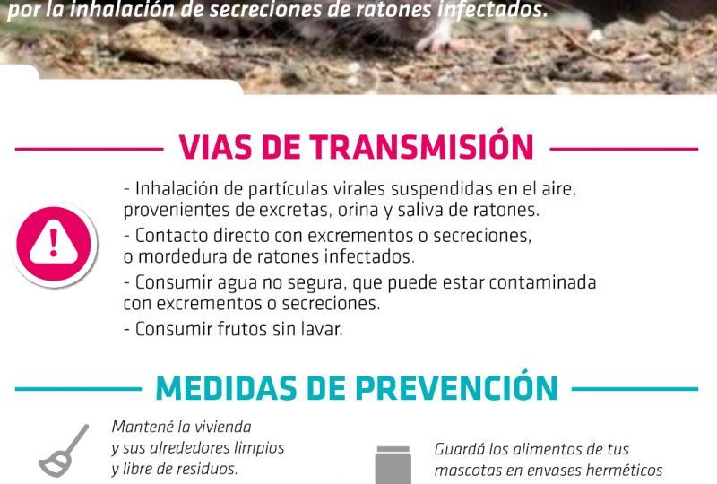 El Ministerio de Salud, a través de la dirección de Promoción y Prevención, explicó las medidas fundamentales para evitar esta enfermedad viral, trasmitida por roedores.