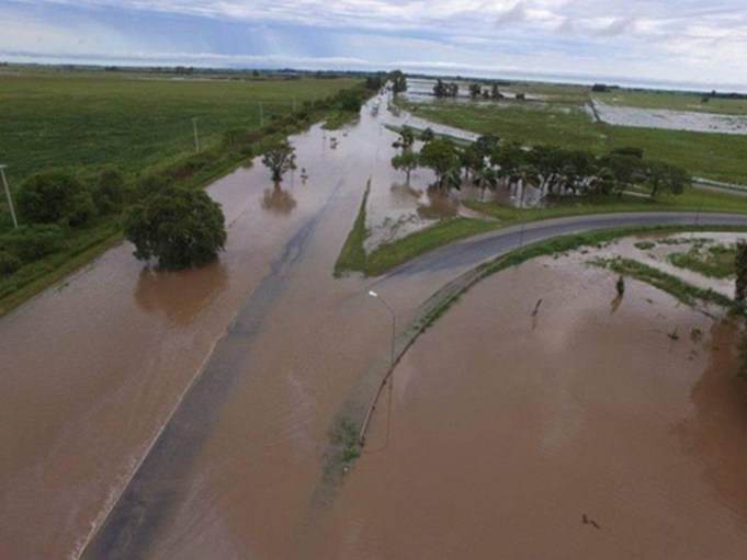 En la mañana de este jueves 24 de enero aún se podía observar gran cantidad de agua sobre la Ruta Nacional N°11 a la altura de la localidad de Nelson, donde el temporal del miércoles dejó bajo agua a la localidad y gran parte de esta región.