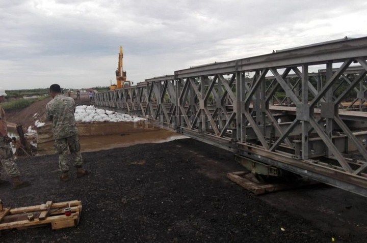 Producto de las intensas lluvias y canalizaciones clandestinas, en la Ruta Provincial 1 se produjo un socavón, a la altura de Colonia Teresa, que impedía el tránsito por el lugar. Al respecto, luego de 1 semana, este domingo instalaron el puente que permitirá la transitabalidad.