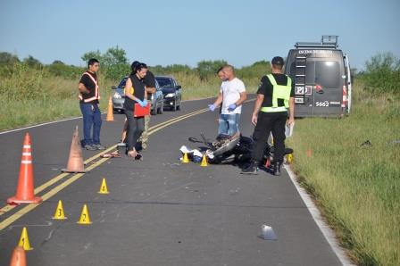 Fecha 18-02-19 – siendo las 04,40 horas, personal de la Comisaría 5ª tomó intervención en accidente de tránsito, ocurrido sobre Ruta Pcial. 100 altura del km 6, donde por causas que se tratan de establecer la motocicleta CORVEN MIRAGE 110 c.c., guiada por RAMÓN INOCENCIO ENRIQUE de 44 años, domiciliado Zona Urbana Villa Guillermina, al llegar al km 6,200; habría colisionado con un animal vacuno de pelaje oscuro y como consecuencia del impacto y a la llegada personal actuante, ocupante del birrodado se encontraría sin signos vitales.