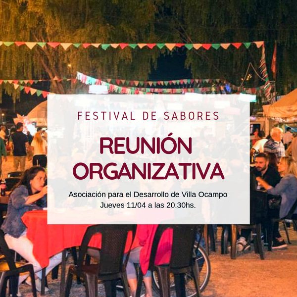 La Secretaría de Cultura y Comunicación de la Municipalidad de Villa Ocampo informa que ADVO (Asociación para el Desarrollo de Villa Ocampo) está organizando un «Festival de Sabores» para el sábado 18 de mayo, en el marco de la 2º Feria del Libro del Jaaukanigás; una propuesta que tiene como objetivo poner en valor la gastronomía local y promover el turismo.