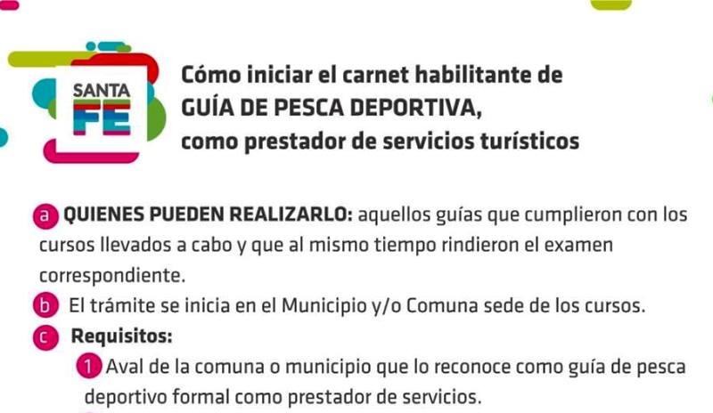 Estos son los requisitos que deben presentar a la Secretaría de Turismo de Las Toscas quienes quieran acceder, de modo gratuito, al CARNET DE GUIA DE PESCA DEPORTIVA para prestadores de servicios turísticos.