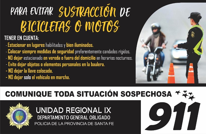 DestacadasPoliciales Tratemos de evitar sustracción de bicicletas o motocicletas 21 abril, 2019 Compartir en Facebook Compartir en Twitter tweet Tratemos de evitar sustracción de bicicletas o motocicletas. Relaciones Policiales UR IX