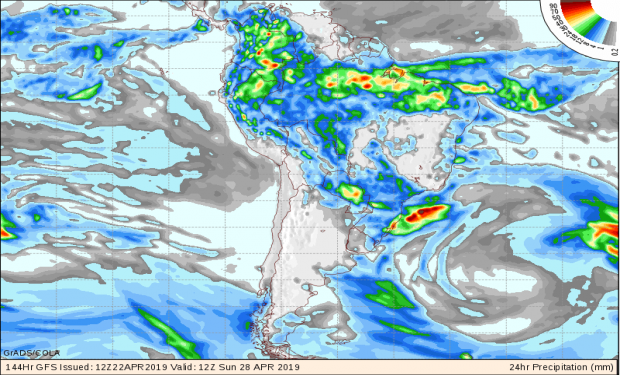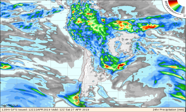 Para el fin de semana, se espera que las precipitaciones se mantengan sobre el noreste del territorio nacional, comenzando a desplazarse a hacia el norte, por lo que los eventos más significativos se observarían durante la jornada del sábado, mientras que el domingo, sólo se registrarían algunas lluvias débiles y en forma más aislada. Sobre la zona central, se espera que el sábado todavía se presente el cielo mayormente cubierto, mientras que durante el domingo, la nubosidad se irá disipando, dejando el cielo despejado o ligeramente nublado.