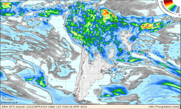 El miércoles, las características volverán a presentarse inestables sobre el noreste argentino, especialmente sobre las provincias de Formosa, Chaco, Corrientes y Misiones, donde podrían registrarse lluvias y algunas tormentas débiles y aisladas. Los fenómenos podrían ir incrementando la intensidad a partir de la tarde, pero no se prevén que superen la intensidad de fenómenos moderados.