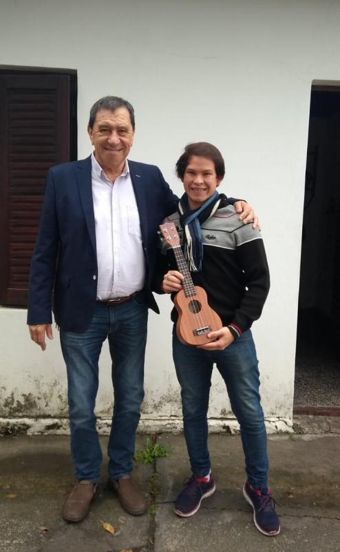 Juntos, entregaron un Uquelele para un joven amante de la música y que fuera beneficiario de un sorteo del programa musical-cultural que conduce Sergio «Contacto Popular» en FM pasión, y desde el cual el precandidato a senador auspicia obsequiando un Instrumento Musical por Semana.