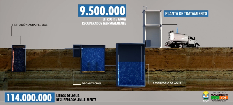 Esta obra permite recuperar más de 9.500.000 de litros de agua que mensualmente se destinan al riego de calles de calzada natural, anteriormente a esta iniciativa ese líquido era extraída de las napas freáticas para el consumo humano.