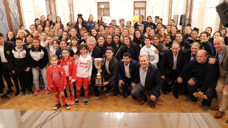 El ministro de Gobierno y Reforma del Estado, Pablo Farías, recibió este viernes a las integrantes de los equipos de Unión de Santa Fe, Santa Rosa de Lima, Rosario Central y Liga Cañadense, finalistas de la primera edición de la Copa Santa Fe de Fútbol Femenino, certamen auspiciado por el gobierno de la provincia y organizado por la Federación Santafesina de Fútbol.