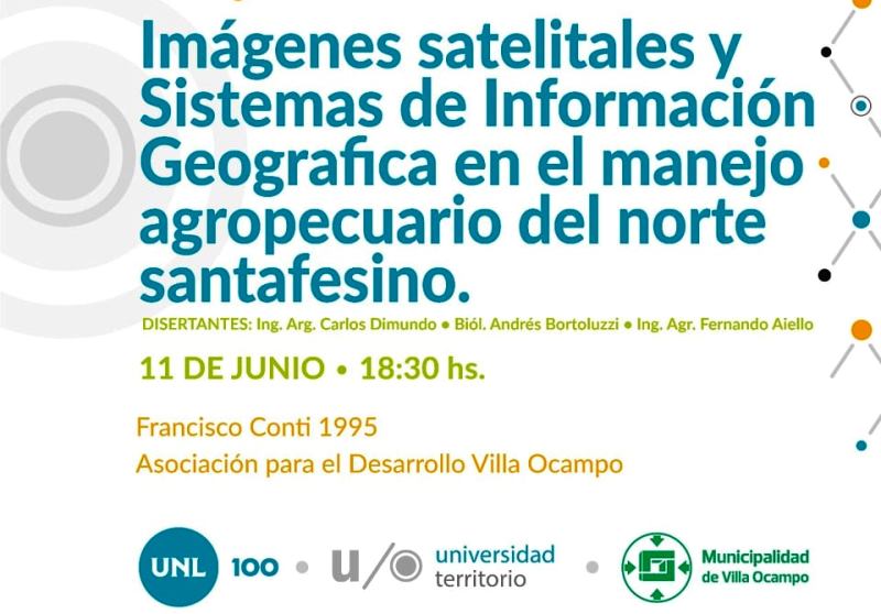 La Secretaría de Hacienda y Producción de la Municipalidad de Villa Ocampo invita a los productores y profesionales agropecuarios a la primera videoconferencia que se realizará en la nueva Unidad Territorial de Innovación y Desarrollo (UTID) que funciona en la Incubadora de Empresas, sobre: “Imágenes satelitales y Sistemas de Información Geográfica en el manejo agropecuario del norte santafesino”.