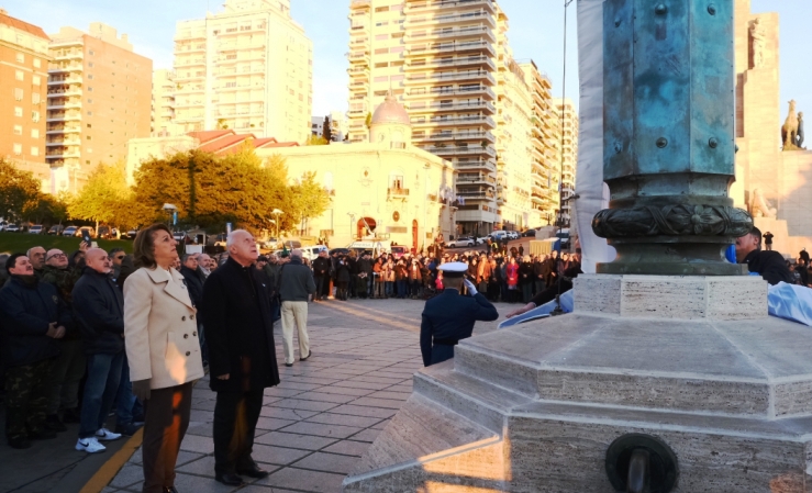 El gobernador Miguel Lifschitz, acompañado por la intendente de Rosario, Mónica Fein, encabezaron este miércoles el acto en conmemoración del Día de la Bandera, que se desarrolló en el mástil de Monumento Nacional.