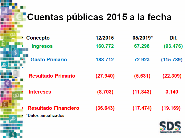 . – Bueno el gobierno viene realizando una reducción del gasto público increíble, como también una fuerte baja del déficit fiscal. Te puedo mostrar lo que sucedió entre los años 2019 y 2015. El gasto bajo el 61,3% en dólares, y esto posibilito que el resultado primario bajara el 79,8%. Esto es una baja del gasto muy importante, que todavía es insuficiente para poder lograr el tan ansiado equilibrio fiscal o déficit 0. En concepto de intereses este gobierno paga mucho más porque procedió a reconocer la deuda impaga del gobierno K, y tomo más deuda para financiar el déficit fiscal de los años 2016/17/18.