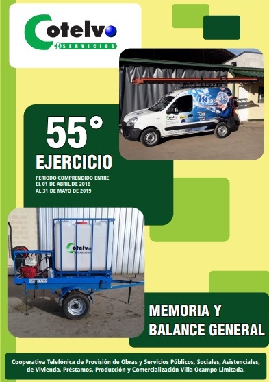 El Consejo de Administración de COTELVO Servicios convoca a todos los asociados a retirar en la sede de la cooperativa su ejemplar de la Memoria, Balance General, Cuadro de Resultados, Notas y Cuadros Complementarios, Anexos, Resultados del Ejercicio, Informe del Síndico y Dictamen del Auditor, correspondiente al 55º Ejercicio Económico y Social; comprendido entre el 1º de abril de 2018 y el 31 de marzo de 2019.