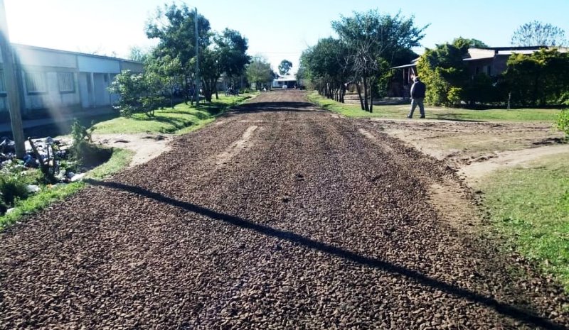 La Secretaría de Servicios Públicos de la Municipalidad de Villa Ocampo informa que se realizaron trabajos de sembrado de piedras para lograr un mejorado en la calle Güemes, de acceso al Centro Integrador Comunitario (CIC) del Barrio Juan Perón.