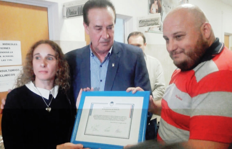 Allí, el senador Marcón entregó a Mariano Regonat y Claudia Braidot, padres de Lolo, la Declaración de Interés de la Cámara de Senadores, por su noble acto de solidaridad y amor.