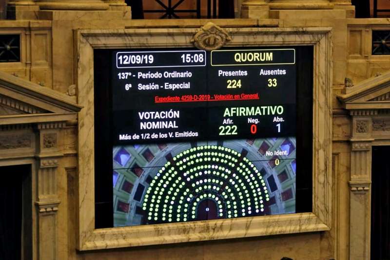 Finalmente, la Casa Rosada decidió acompañar la sanción de la iniciativa que recibió 222 votos a favor, ninguno en contra y una sola abstención.