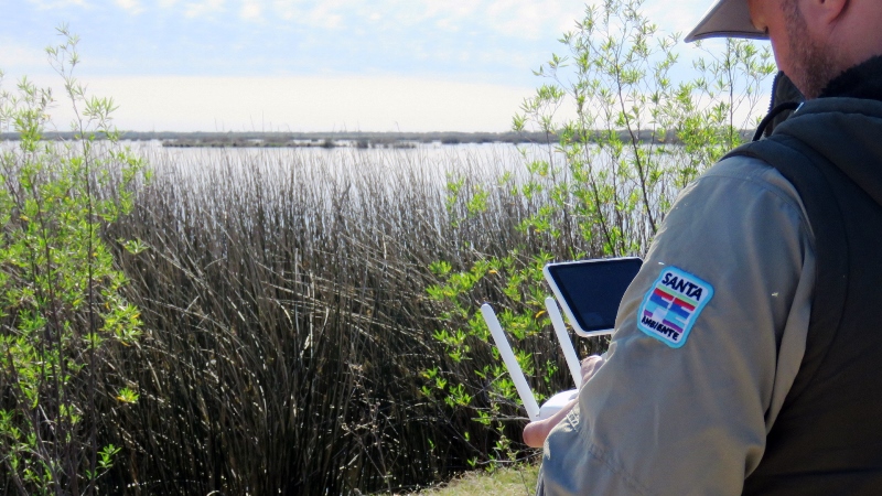 La jornada se enmarcó en un proyecto conjunto entre el gobierno provincial y Conicet Entre Ríos con el objetivo evaluar la utilidad de drones en la estimación de especies de aves acuáticas presentes y sus densidades.