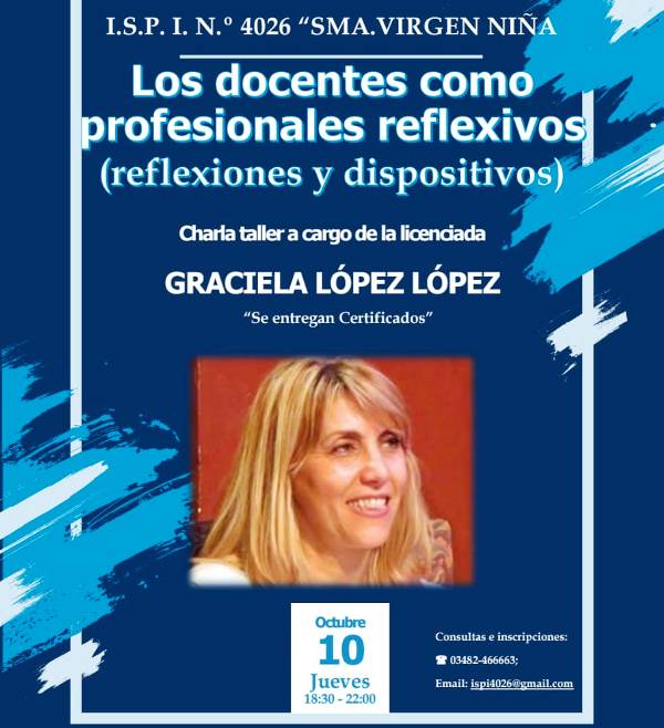I.S.P.I. N°4026 Sma. Virgen Niña: Charla Taller «Los docentes como profesionales reflexivos. Reflexiones y dispositivos»