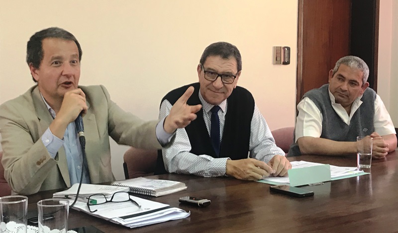 El presidente del Concejo deliberante, Dr. Miguel Massaro; el intendente de la ciudad de Las Toscas, Dr. Leandro Chamorro y el Diputado provincial, Carlos Del Frade, este martes 08 de octubre, en conferencia de prensa anunciaron oficialmente la presentación del proyecto de expropiación de la planta fabril ingenio azucarero de Las Toscas.