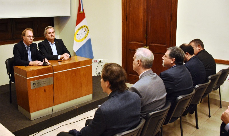 Los ministros de Gobierno y Reforma del Estado, Pablo Farías; y de Economía, Gonzalo Saglione, encabezaron este jueves en la ciudad de Santa Fe, el acto de apertura de la oferta económica, en el marco de la licitación pública Nº 23/19 para la contratación de una entidad bancaria que actúe como agente financiero y caja obligada de la provincia. El acto se llevó a cabo en el salón Auditorio de Casa de Gobierno.