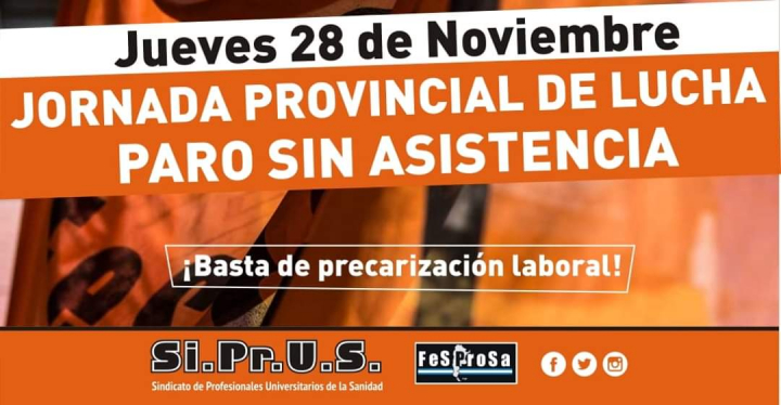 El próximo jueves SIPRUS realizará una Jornada Provincial reclamando por los pases a planta de los monotributistas y contra el atraso constante en el pago de los salarios a los mismos, sostén de la cláusula gatillo y reemplazos de los cargos vacantes. También por el pago de los adicionales adeudados y la provisión de los insumos y medicamentos necesarios para brindar salud a la población