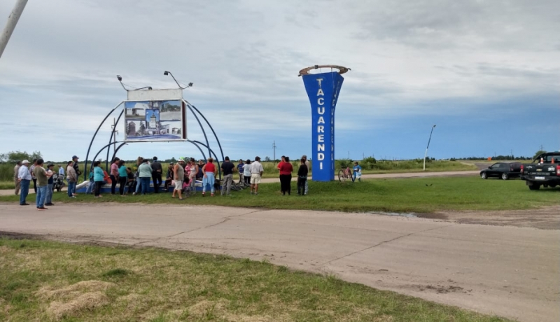 Unas 40 personas se manifiestan este lunes 2 de diciembre de 2019 al costado de la Ruta Nacional N° 11, en el kilómetro 883, frente al acceso principal de Tacuarendí.
