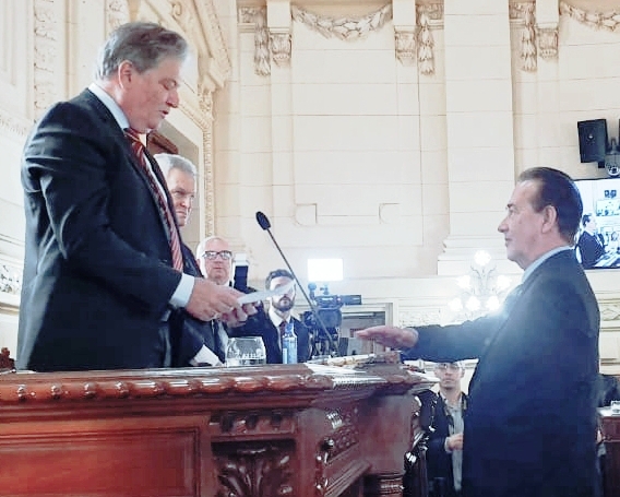La toma de juramento para el periodo 2019-2023, le fue realizada por el vicegobernador y titular del Cuerpo legislativo, Carlos Fascendini.