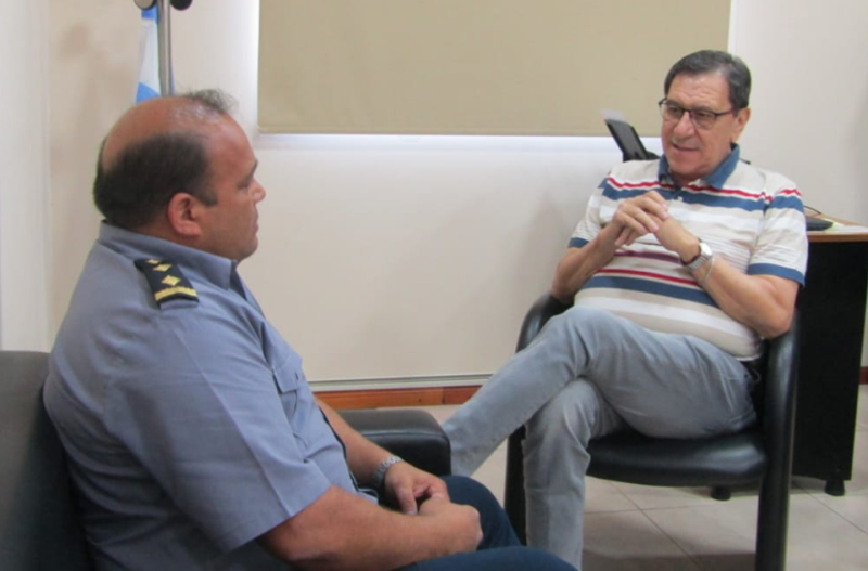 REUNIÓN ENTRE EL COMISARIO SUPERIOR, MARCELO BERTRÁN Y EL INTENDENTE, LEANDRO CHAMORRO. Esto fue en virtud de que ha regresado a la comisaría 5ª de la ciudad de Las Toscas, ahora con el cargo de Comisario Superior, Marcelo Bertrán, como Jefe de la Unidad.