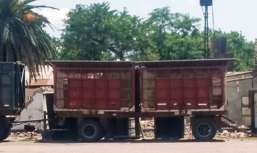 Colocaron acoplados JAVAS, delante la construcción a demoler, para que quienes pasan por la calle que da al sector sur de la vieja fábrica no puedan ver lo que están haciendo, de todas maneras, se puede apreciar perfectamente el daño que están haciendo al ingenio azucarero.