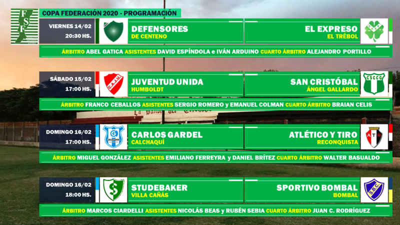 La Federación Santafesina de Fútbol informó el cronograma de partidos para el próximo fin de semana, que corresponden a los encuentros de ida del cuadro de Cuartos de Final de la Copa Federación 2020.