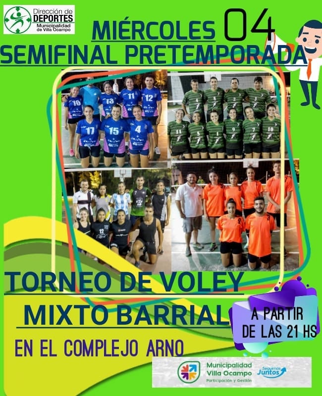 La Dirección de Deportes de la Municipalidad de Villa Ocampo invita a presenciar la instancia semifinal de la temporada 2020 del Torneo de Voley Mixto Barrial.