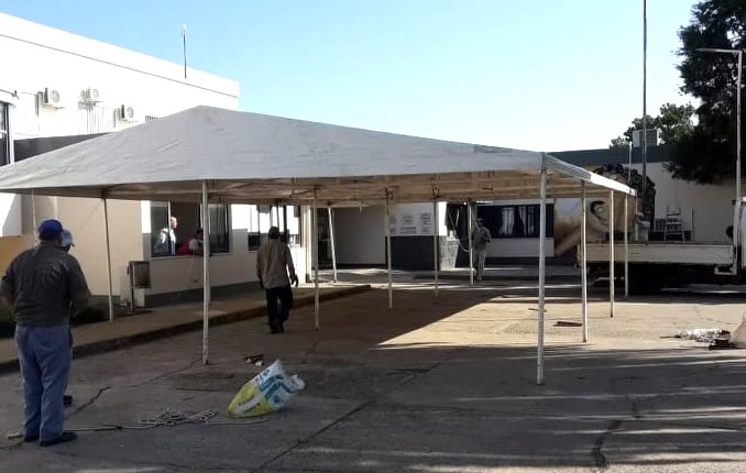 A solicitud de la Dirección del Hospital SAMCO «Dr. Esteban Galmarini», la Municipalidad de Villa Ocampo procedió a instalar una carpa en el sector de estacionamiento del centro de salud para que, durante la emergencia sanitaria, funcionen allí los consultorios externos que permitan recibir a pacientes con síntomas febriles o insuficiencia respiratoria.