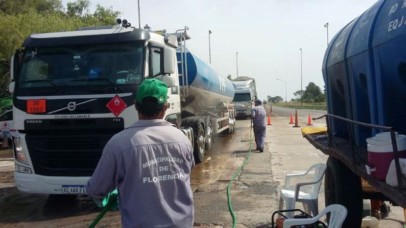 “Estamos las 24 horas trabajando… entre Bomberos y personal del Municipio… vemos que la mayoría de los camioneros o vehículos que pasan por este lugar están predispuestos y agradecen nuestro trabajo, claro que hay excepciones, pero son pocos, de igual modo los que no se dejan desinfectar no pueden pasar el control, los detiene Gendarmería Nacional. Nosotros estamos trabajando desde que inicio la cuarentena en Florencia, que fue unos días antes que el presidente decrete esta misma medida para todo el país. Solo ayer paramos un rato la desinfección porque llovía, estas tareas de desinfección lo venimos realizando, desde el jueves pasado …” detallo.