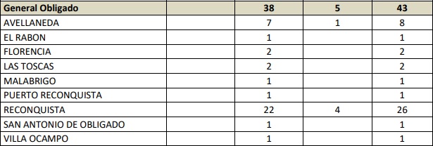 Dpto General Obligado: / Localidad / Confirmados / Descartados / Sospechosos / Total