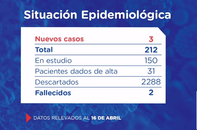El Ministerio de Salud de Santa Fe, a través de la Dirección Provincial de Epidemiología, informa a la población que a la fecha han sido confirmados 3 casos nuevos de COVID-19, con residencia en el territorio provincial.