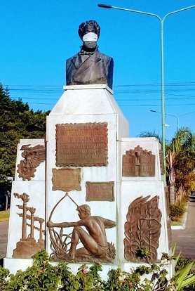 Villa Ocampo: Barbijos en los monumentos de la ciudad