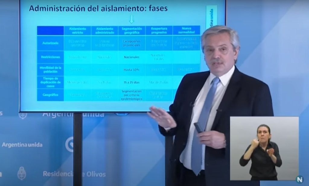 – Los grandes aglomerados urbanos son los lugares de mayor riesgo de transmisión del virus. Por ese motivo, todos los aglomerados urbanos de más de quinientos mil habitantes en el país seguirán cumpliendo las medidas de aislamiento social, preventivo y obligatorio como lo hicieron durante los últimos quince días.