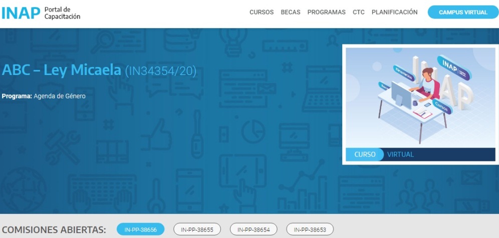 Este curso tendrá también una instancia de formación presencial una vez que finalice el aislamiento social, preventivo y obligatorio o virtual sincrónica en caso que la emergencia sanitaria se extienda. La inscripción podrá realizarse hasta el 8 de mayo a través de la página web https://capacitacion.inap.gob.ar/actividad/abc-ley-micaela/.