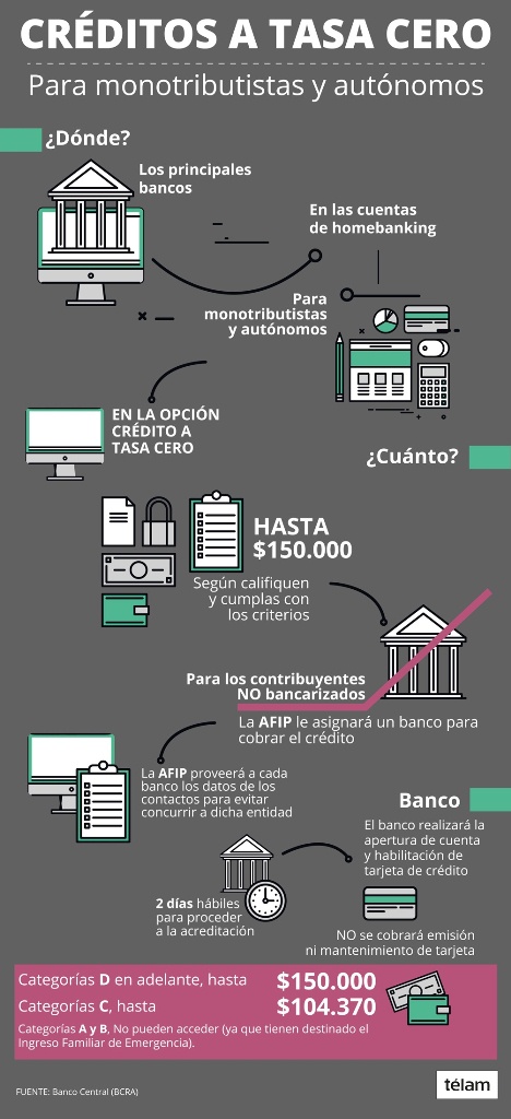 En caso de no poseer tarjeta, el autónomo o monotributista deberá informar cuál es la entidad bancaria elegida para tramitar el crédito.