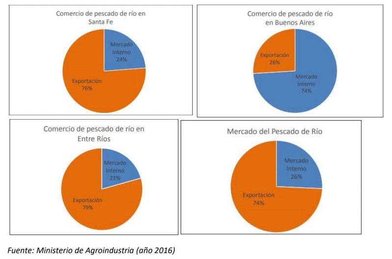 ¿Por qué la exportación es la clave de la explotación del río (y los pescadores)?. Veamos datos de 2016 del Ministerio de Agroindustria: De las 31.659 toneladas anuales comercializadas por Santa Fe, Entre Ríos y Buenos Aires, el 74% fue para la exportación y el 26% al mercado interno. El desglose indica que el 51% de esas toneladas lo aportan las empresas radicadas en Entre Ríos, el 42% las de la provincia de Santa Fe y el 7% las pertenecientes a Buenos Aires. Está claro porqué casualmente esas provincias son las que se oponen a parar la exportación aún en tiempos de sequía extrema y pandemia.