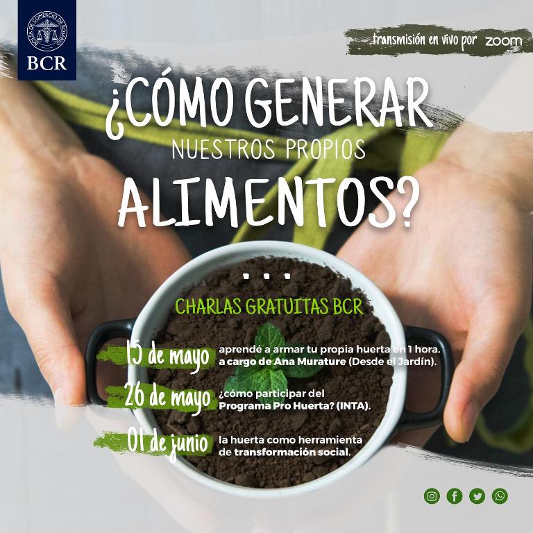 El ciclo de la BCR (Bolsa de Comercio de Rosario), es acompañado por la Fundación Bolsa de Comercio de Rosario junto al Instituto Nacional de Tecnología Agropecuaria (INTA), Municipalidad de Rosario, la Universidad Nacional de Rosario (UNR) y Nutrired. Con el objetivo de introducir los conceptos y las herramientas necesarias para armar una huerta en una hora, cómo participar del programa Pro Huerta y comprender a ésta práctica como una herramienta de transformación social.