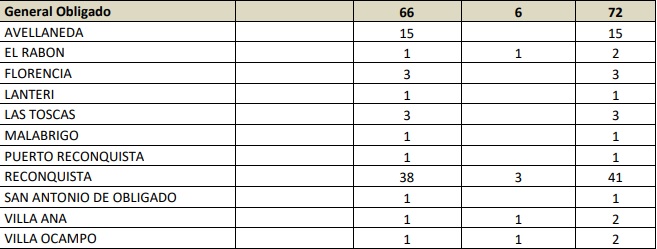 Dpto.Gral.Obliagdo.Localidad / Confirmados / Descartados / Sospechosos / Total