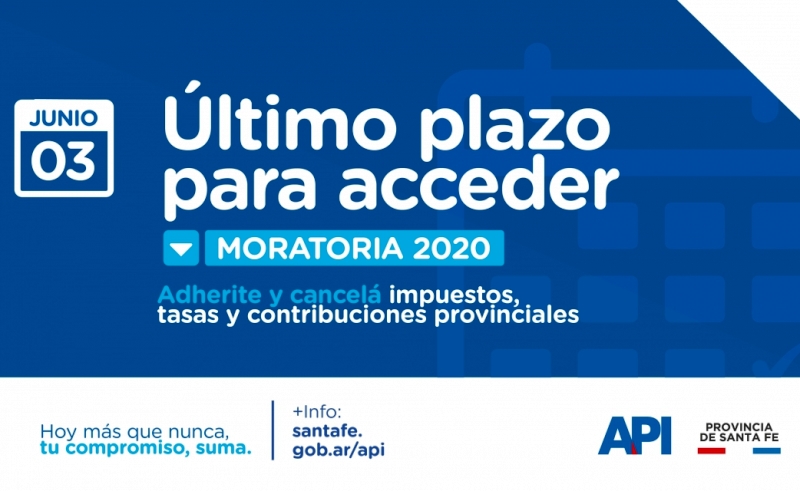 La Administración Provincial de Impuestos (API) recordó que el 3 de junio venidero vence el último plazo para acceder a la moratoria de la provincia 2020, con los beneficios dispuestos por la ley Nº 13976.