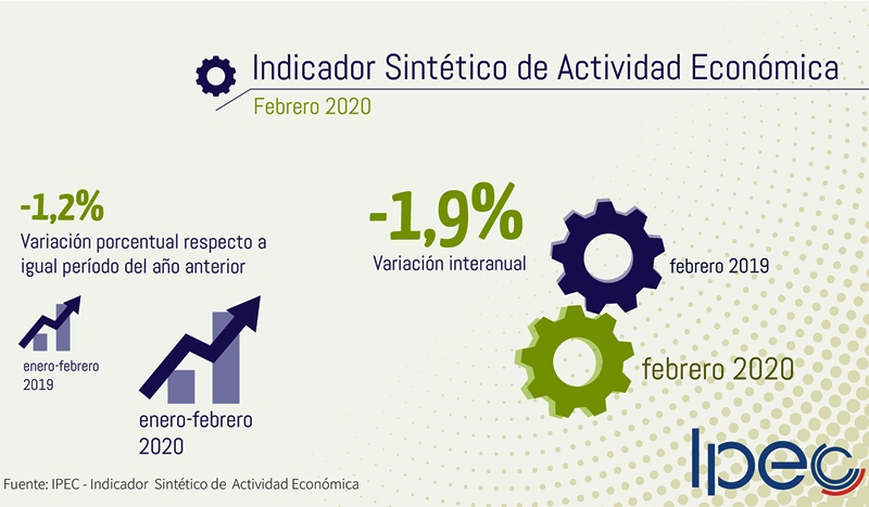 El ISAE registró una caída de 1,9% en febrero de 2020 respecto del mismo mes del año anterior. Mensualmente, el indicador presentó una suba del 0,7% en febrero de 2020 con respecto a enero de 2020.