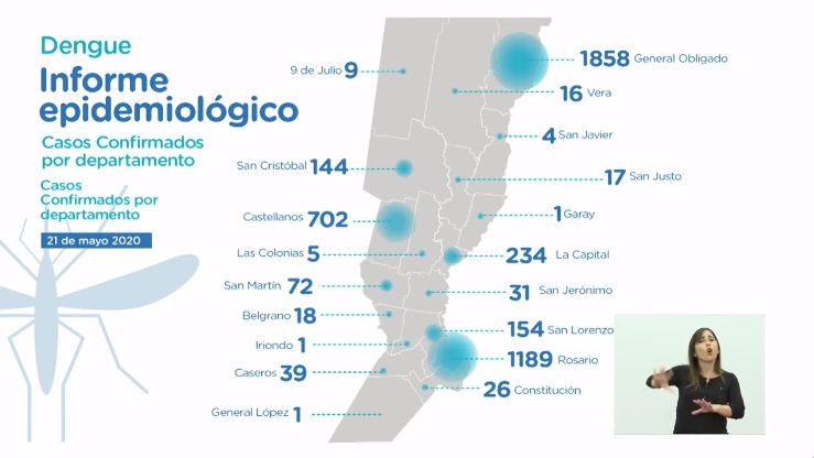 El Ministerio de Salud de Santa Fe, a través de la Dirección Provincial de Epidemiología, informa a la población que desde la Semana Epidemiológica (SE) 1 hasta la SE 20 de 2020 se notificaron al Sistema Nacional de Vigilancia de la Salud (SISA-SNVS 2.0) 6.711 casos con sospecha de dengue.